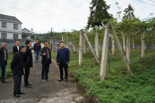 上图为易爱江一行实地查看猕猴桃种植基地